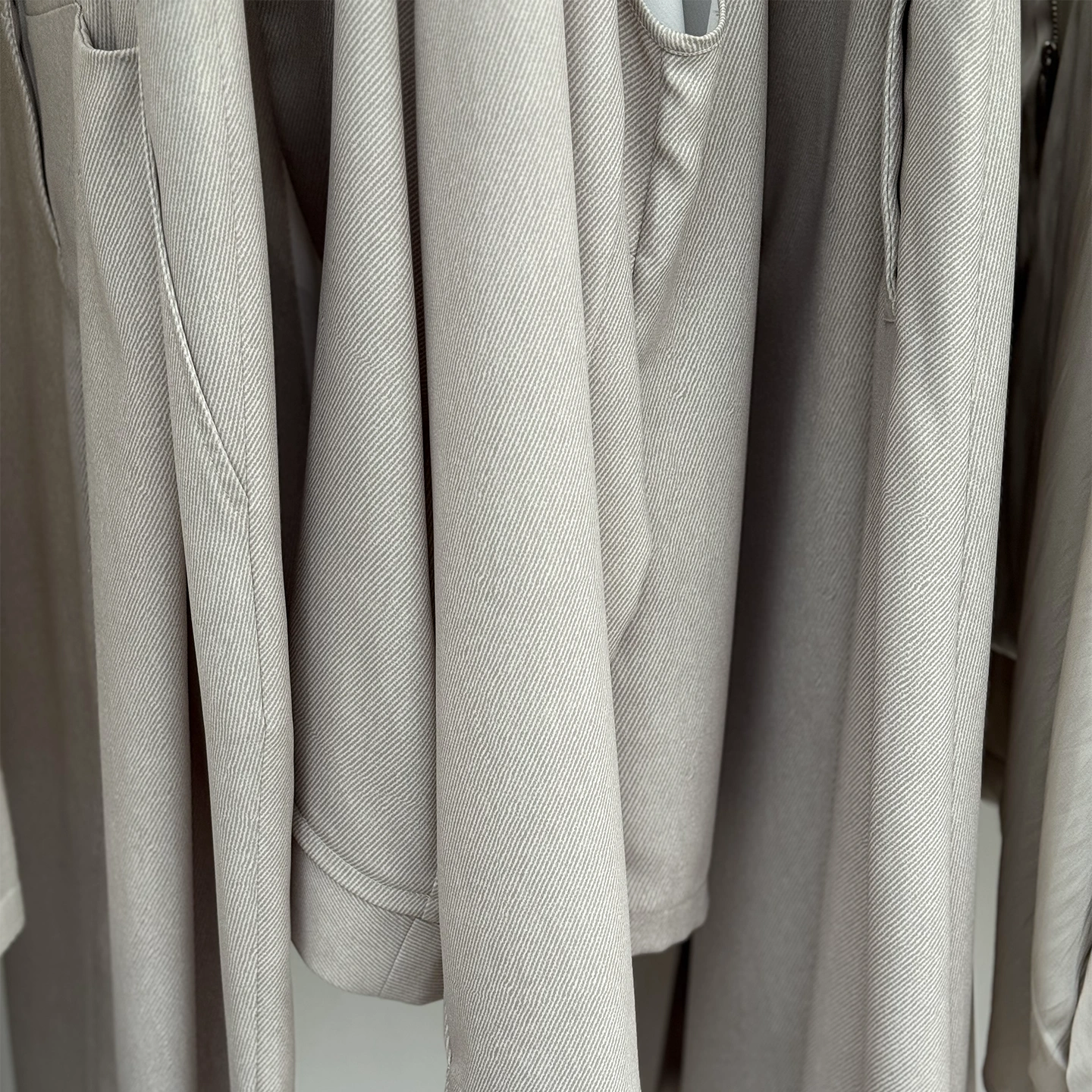 Presented during Paris Fashion Week, the collection redefines the jacket as a contemporary essential. Architectural tailoring meets weightless, fluid fabrics, opening a dialogue between structure and softness, rigour and ease. Sharp suits coexist with soft, relaxed pieces; masculine lines converse with feminine curves; plush textures soften hard edges; and voluminous shapes play against oversized forms. The result is a semi-formal wardrobe with a subtle, rebellious edge — a visual language that captures the spirit of the modern Barbara Bui woman.