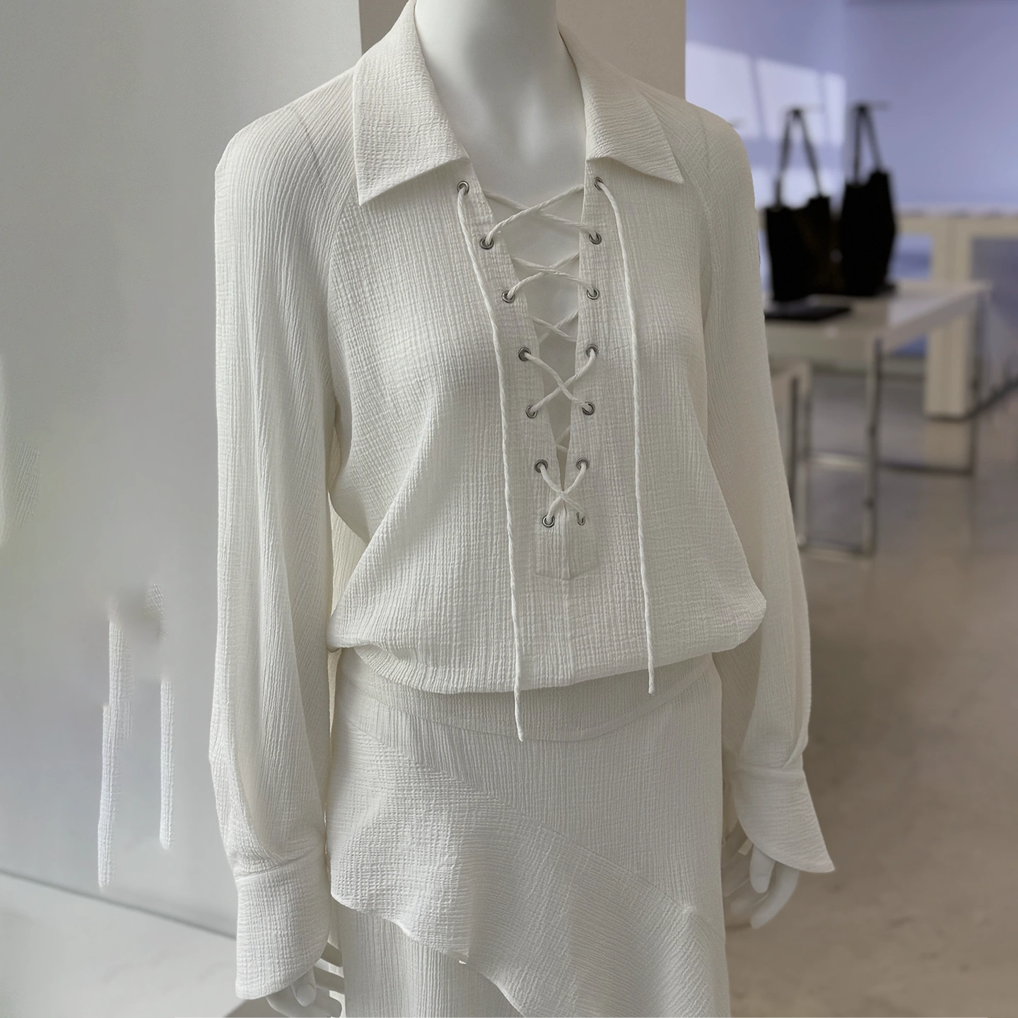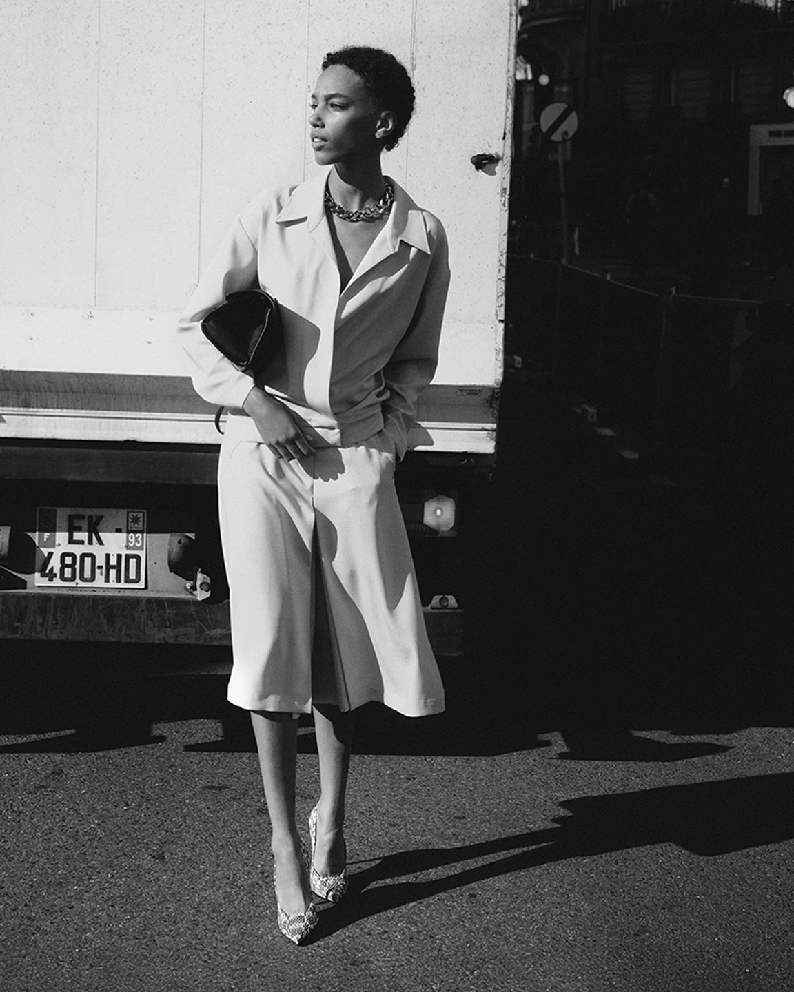 SS26 is a study in duality — sharp tailoring softened by fluidity, structured volumes balanced by ease, elegance infused with subtle edge. Every cut, embellishment, and detail reflects quiet power: fashion as attitude, confidence without aggression, sophistication without excess.