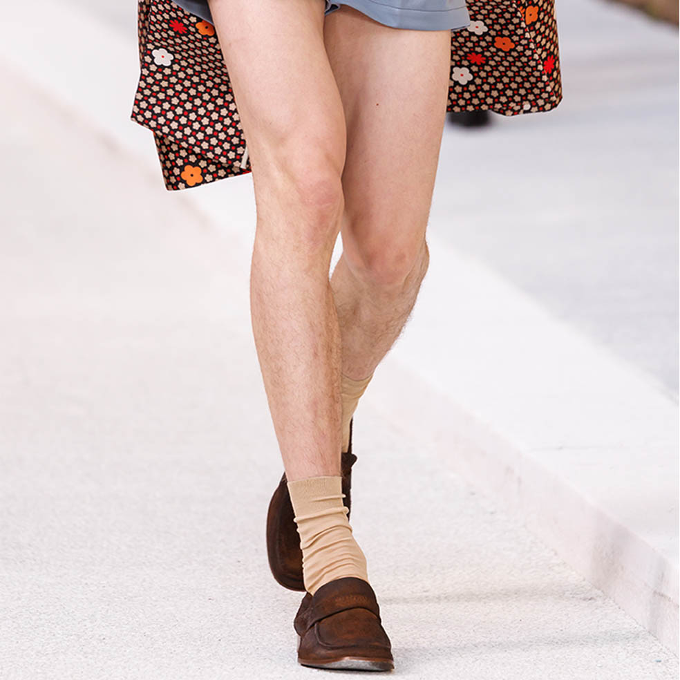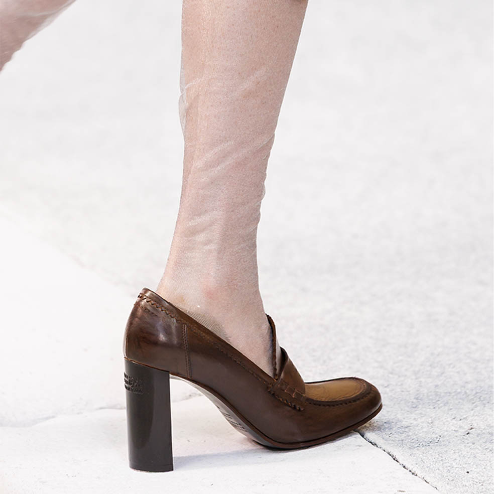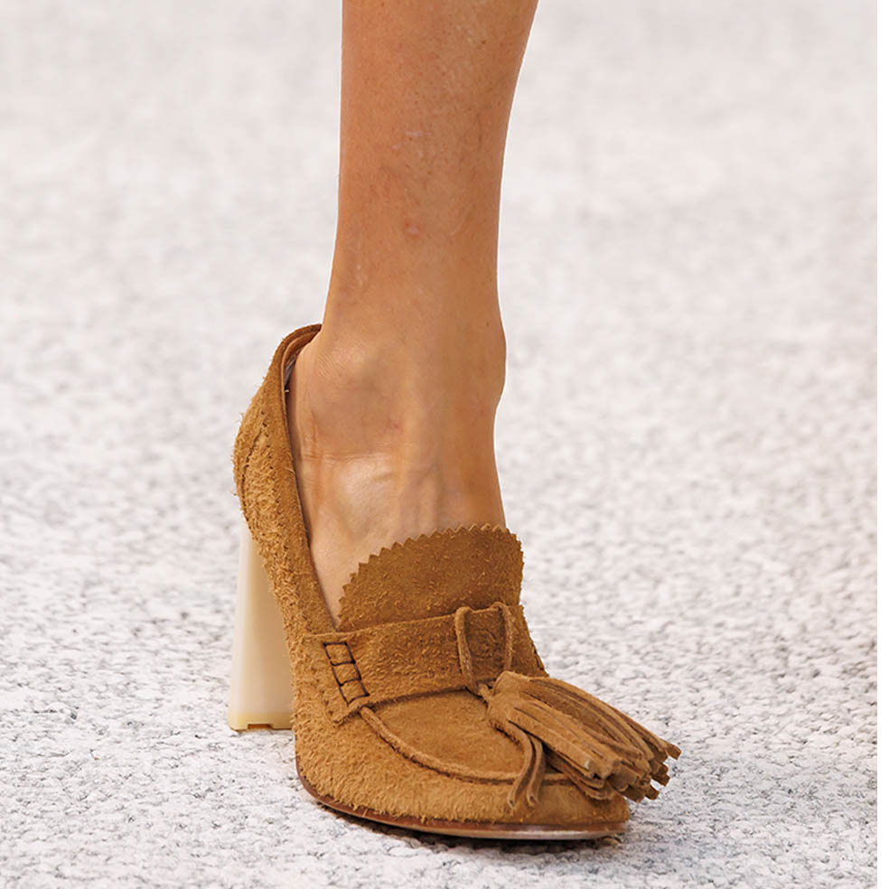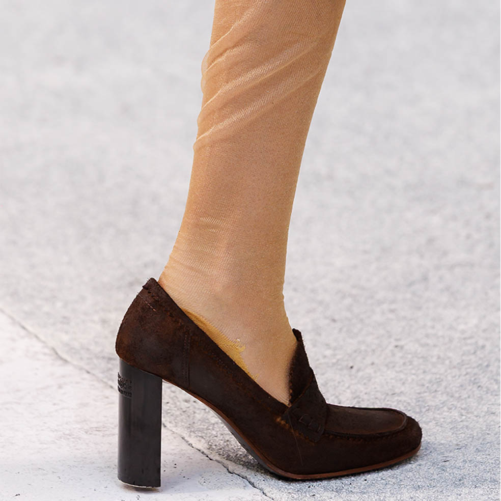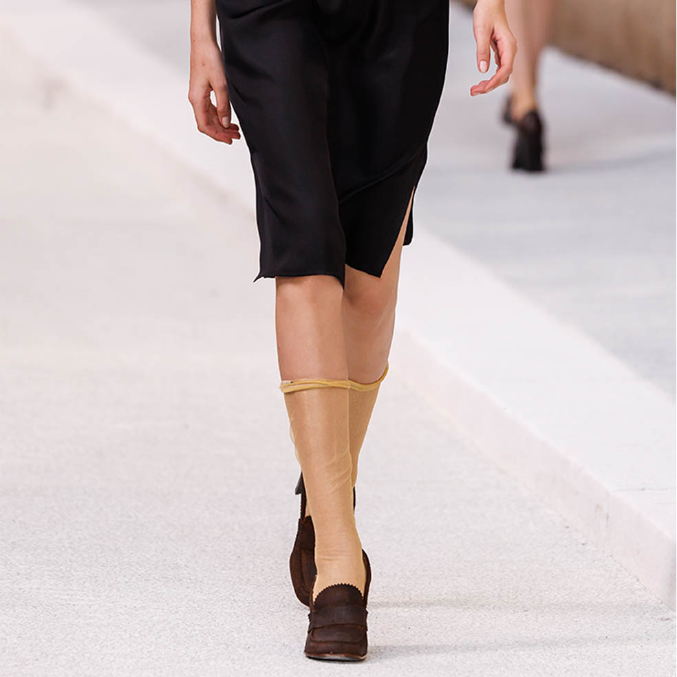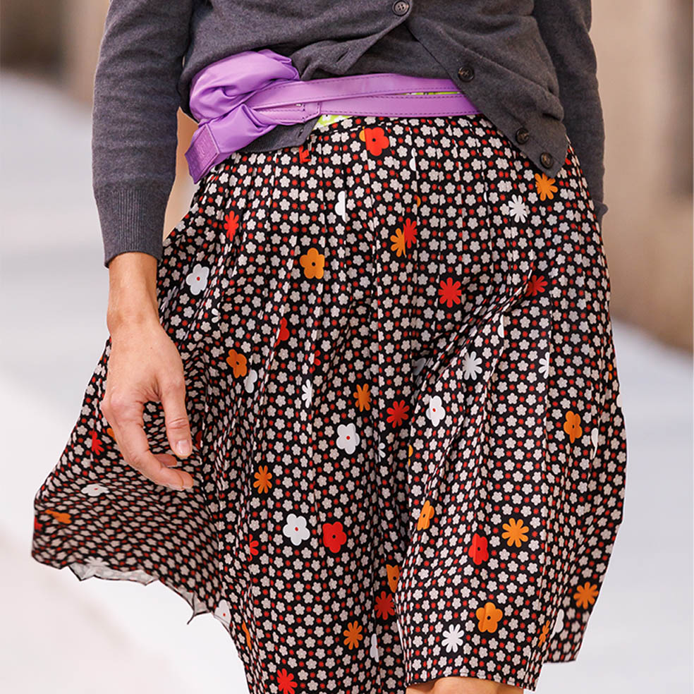 The Collection: Rewriting the Everyday — The SS26 lineup was a masterclass in transforming wardrobe staples into objects of desire, balancing streamlined silhouettes with off-kilter details that winked at the house’s deconstructivist roots. The color palette—a “panoply of post-it colors”—mixed thrift-inspired neutrals (grays, beiges, faded blacks) with electric jolts of acid green, neon blue, and a revived archival geometric floral print in vivid hues. Fabrics ranged from distressed leathers to crisp cottons, with frayed hems and dangling end-of-roll labels adding tactile imperfection. Each piece felt like a conversation between the curated and the chaotic, designed for a wearer who moves effortlessly between the gallery and the grit of the street. Standout looks included garment-bag blousons and capes, their structured yet fluid forms evoking both practicality and surrealism. Tailored trousers masqueraded as denim, while high-waisted jeans embraced relaxed, almost slouchy fits in faded washes or bold prints. Camp-collar shirts and buttoned blousons, often layered with illusionary prints, nodded to a retro sensibility, their covered buttons lending a veneer of “neat” appropriateness. Pantsuits were scrambled with mismatched fabrics, and shift dresses, crafted from garment-bag motifs, swayed with frayed edges that danced in the Milan breeze. Accessories leaned into the playful: satin fanny packs slung low, kitten-heel loafers reimagined as mules, and the house’s signature censor-bar sunglasses, a subtle nod to Margiela’s ironic legacy.