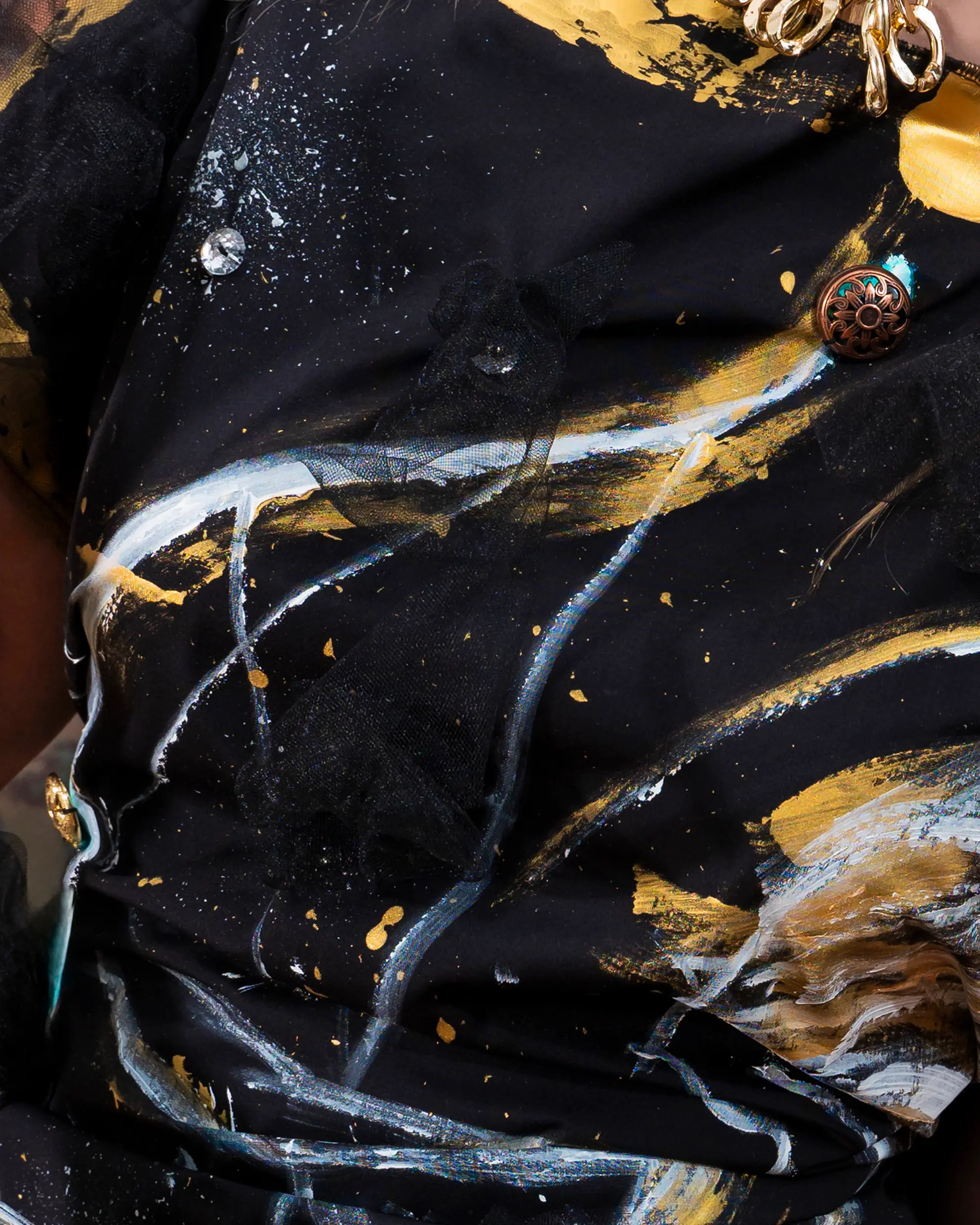 Petar and Dragana Soro are SoRo: two generations, two disciplines, one voice. For them, fabric speaks. Every garment is a sentence written in texture, colour, and movement. SoRo exists where costume collides with streetwear. Their clothes do more than cover the body; they speak, stride, and declare. They move like thoughts, carrying messages from pavement to crowd, turning the everyday into theatre.