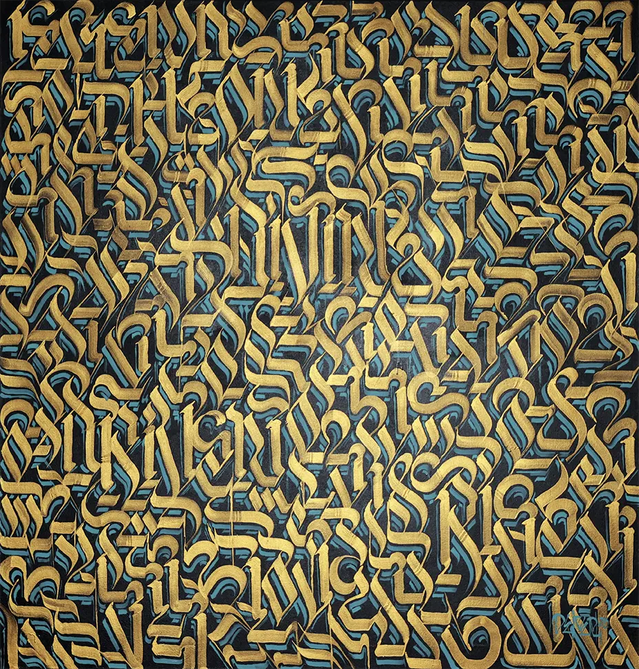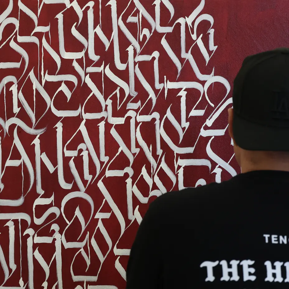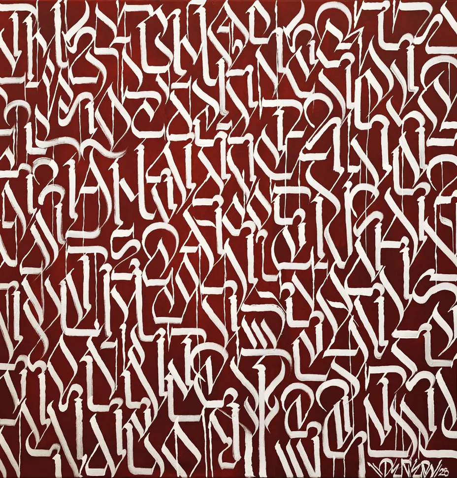 Il ne s’agit pas d’un simple passage du street art à la galerie. C’est une pensée profonde en action. La lettre devient fréquence — une forme de chaos maîtrisée à la fois par l’artiste et par celui qui regarde. La rébellion devient rythme. Le graffiti devient prière.