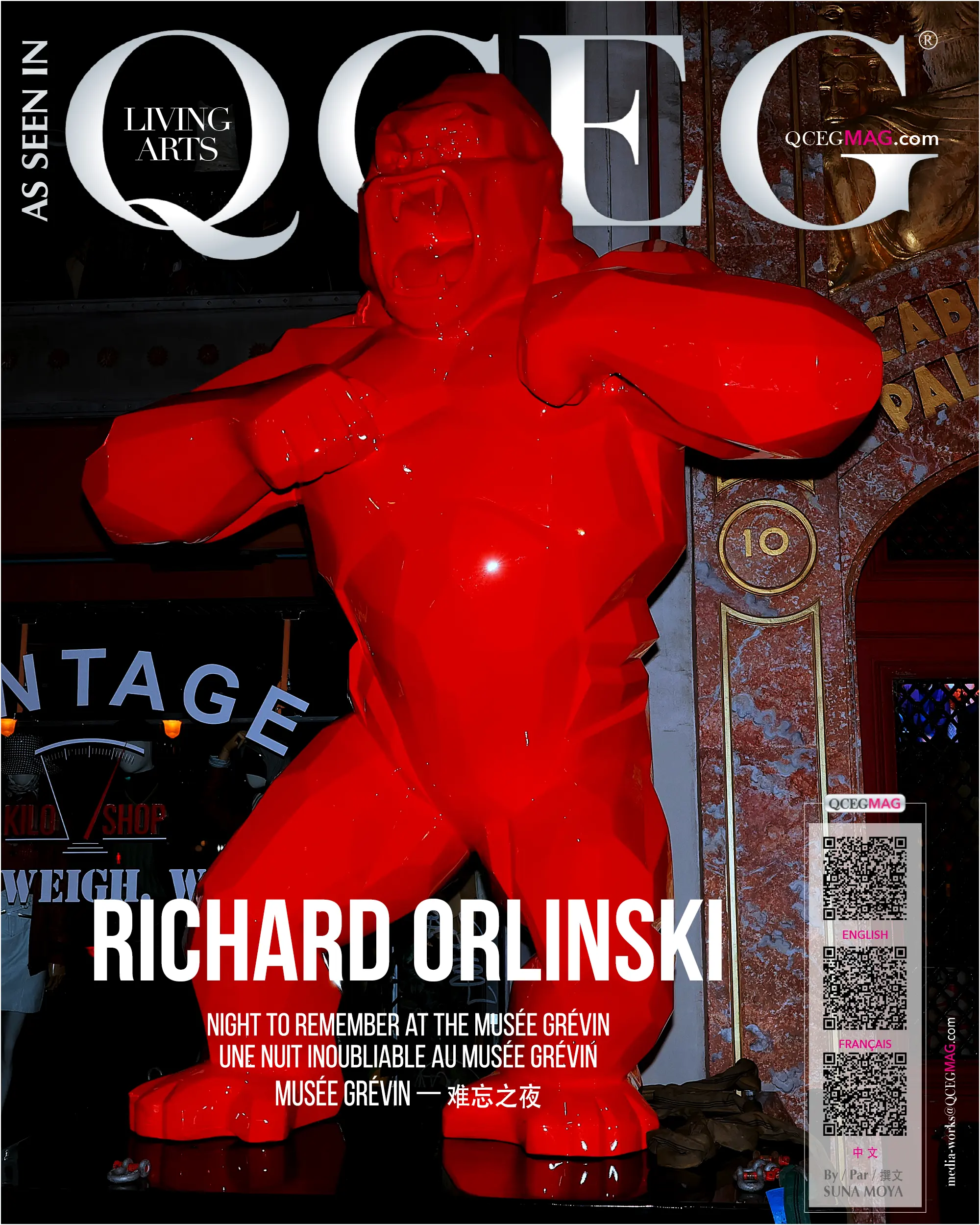 The evening begins with a grand arrival. Camera flashes illuminate the night as a crowd gathers along the Grands Boulevards, alive with excitement. Fans, friends and admirers turn in anticipation to watch Richard Orlinski step into the legendary Musée Grévin. Every click of the shutter, every cheer from the crowd, signals the arrival of an artist whose work has captivated audiences around the world.
