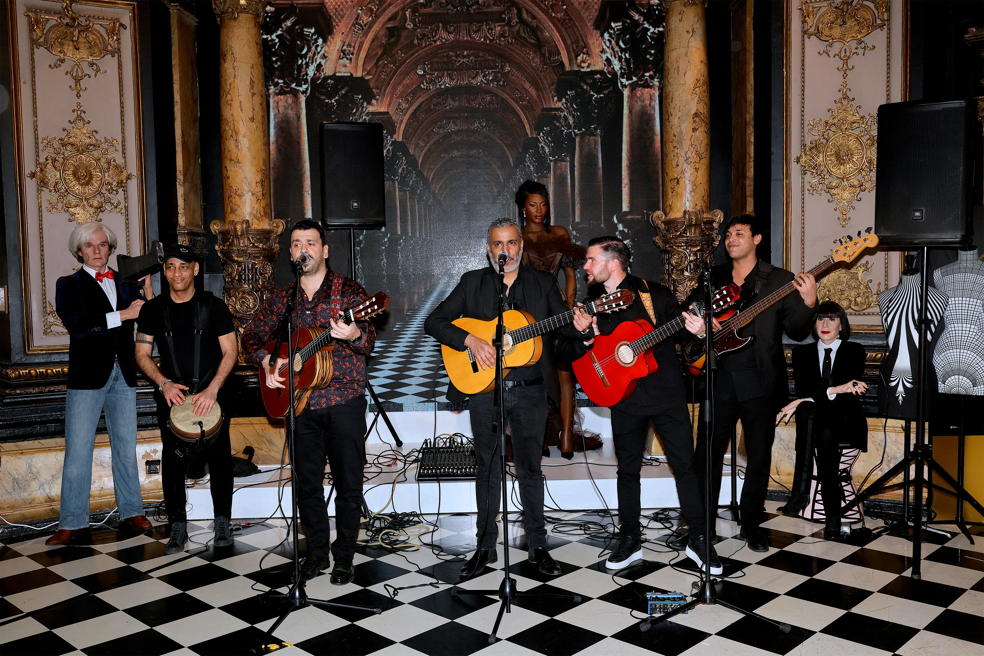 Afterwards, guests wander through the museum, passing figures from the worlds of art, music, cinema and sport.