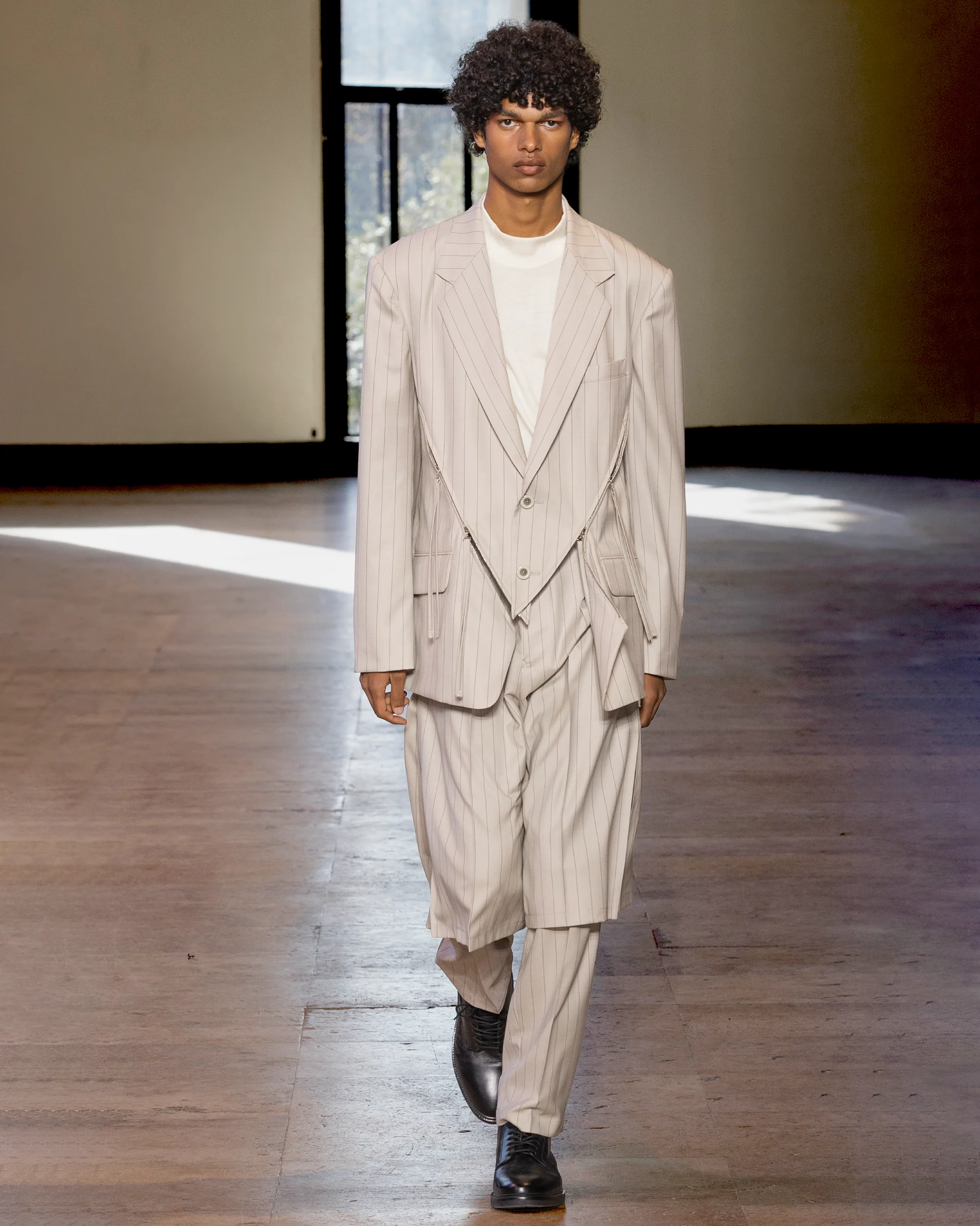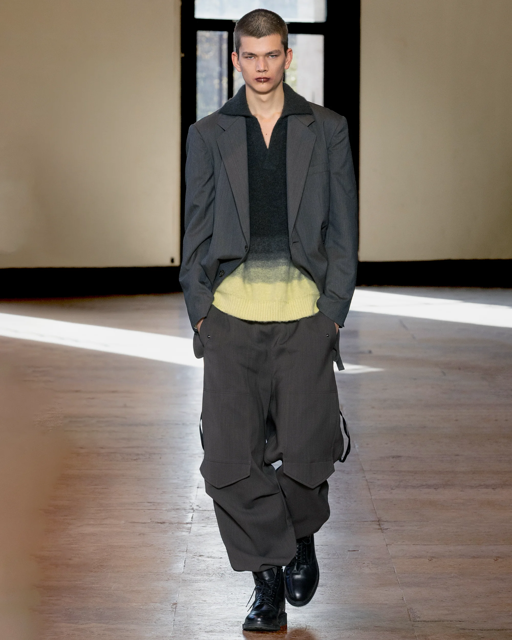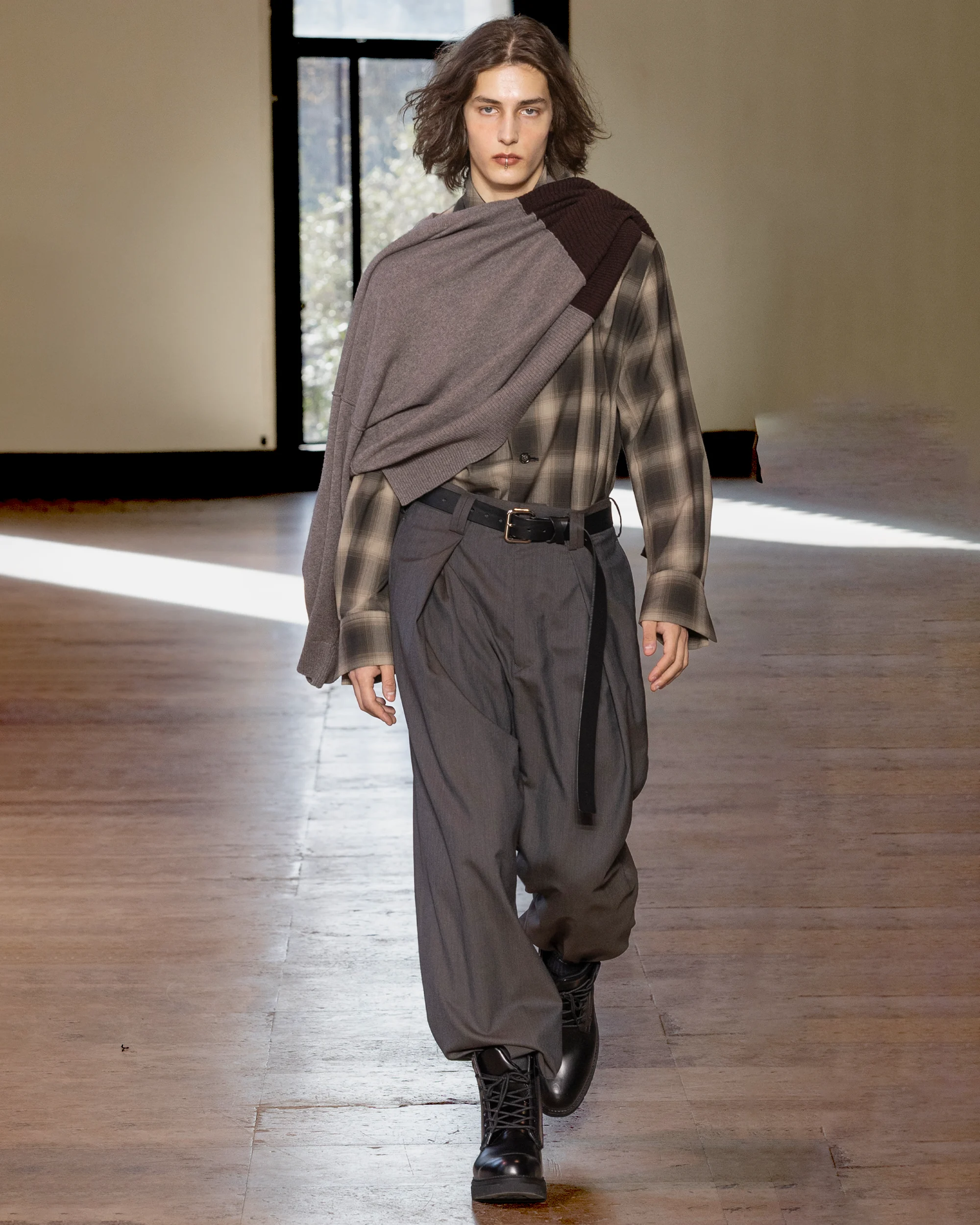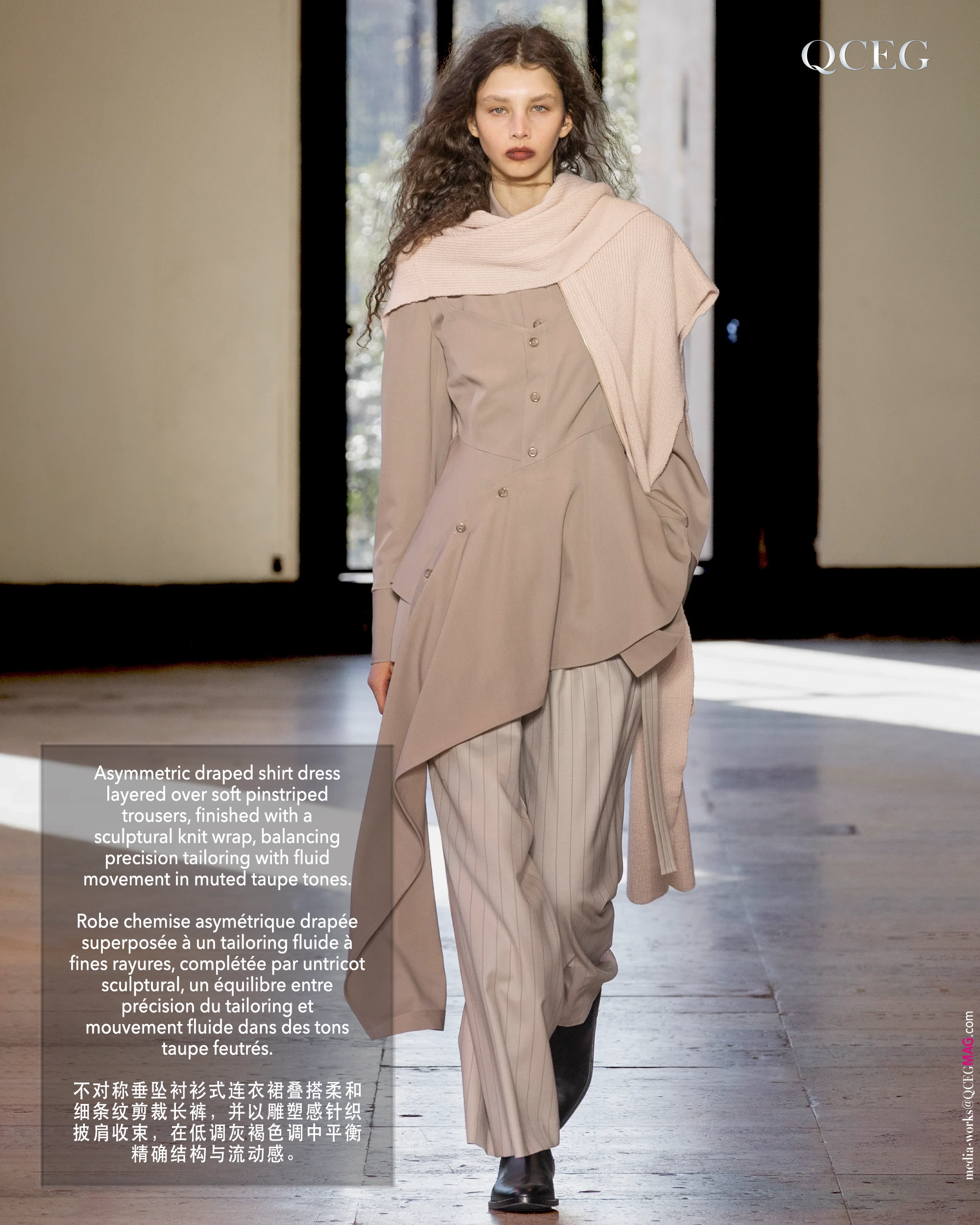 Antithesis 的呈现方式亦呼应其概念。UJOH FW26/27 打破传统秀场节奏,不设固定出场顺序,造型以自由形式展开,带来更具流动性与探索性的观看体验。
