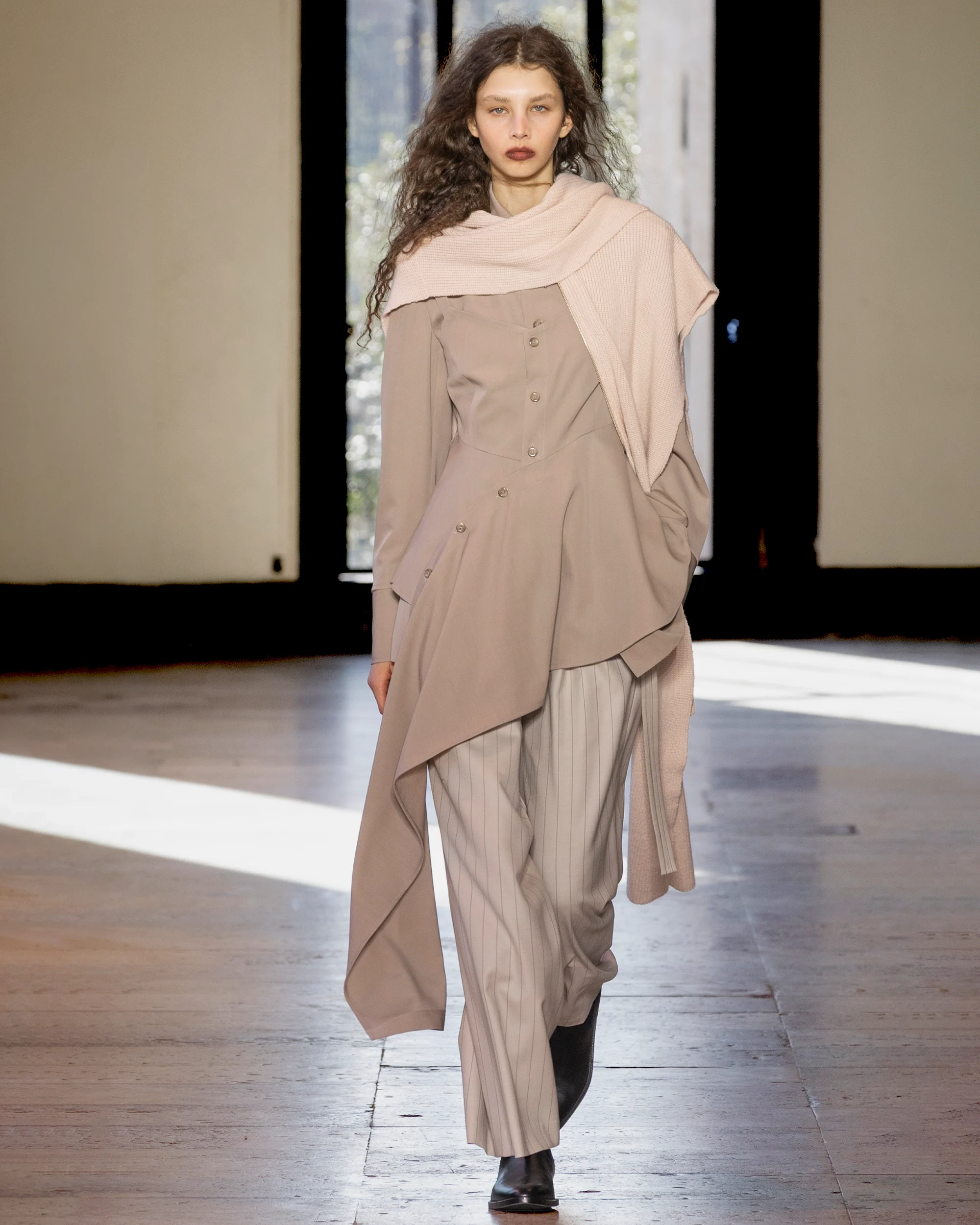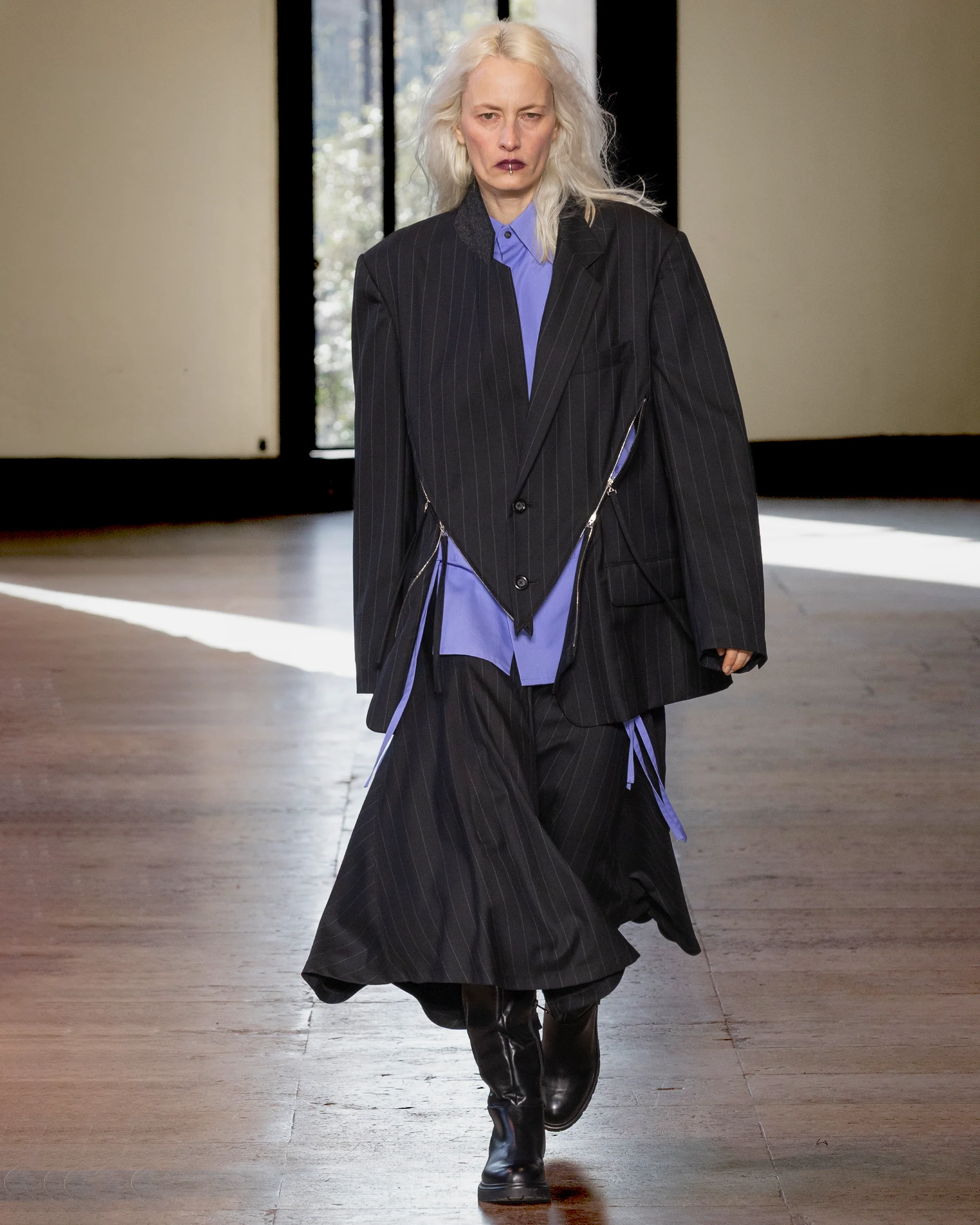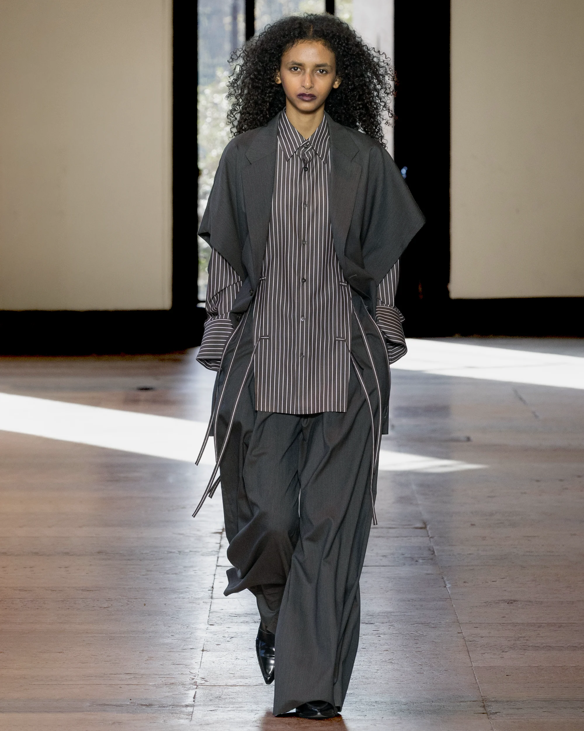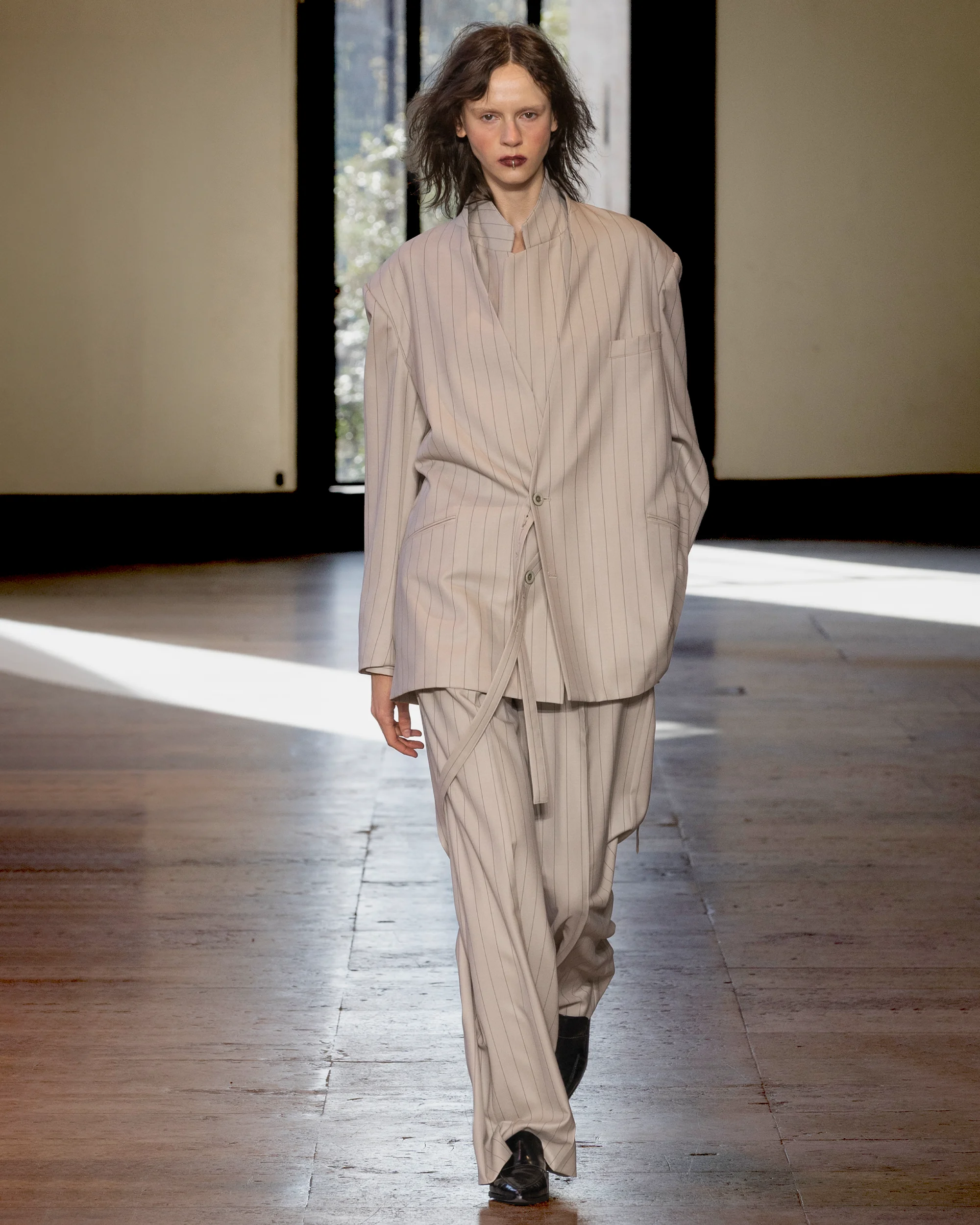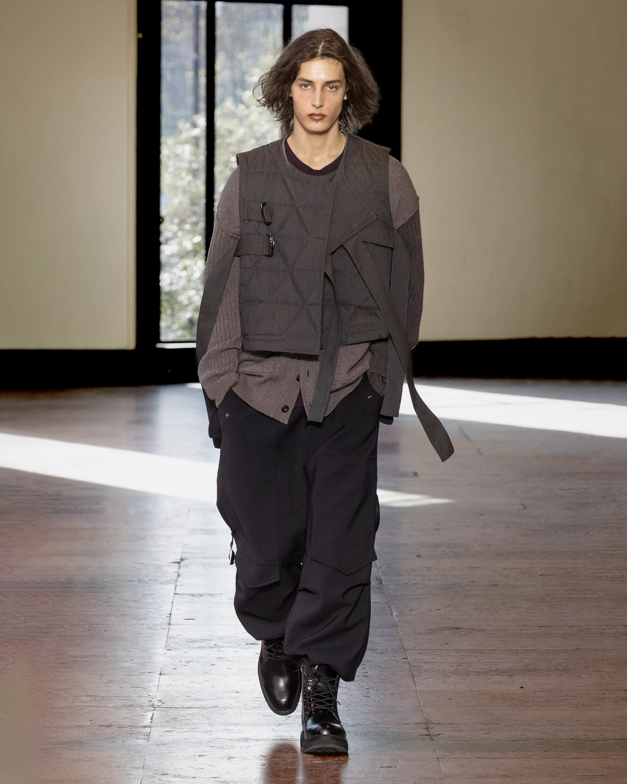 Antithesis 的呈现方式亦呼应其概念。UJOH FW26/27 打破传统秀场节奏,不设固定出场顺序,造型以自由形式展开,带来更具流动性与探索性的观看体验。